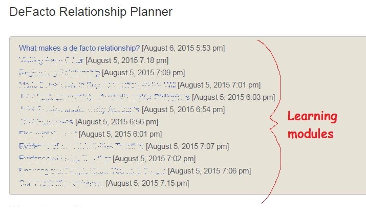 We will also provide the same learning modules to clients already in defacto relationships, to help them fine-tune their much more-detailed visa requirements to prove that the defacto relationship is in fact a genuine defacto relationship.